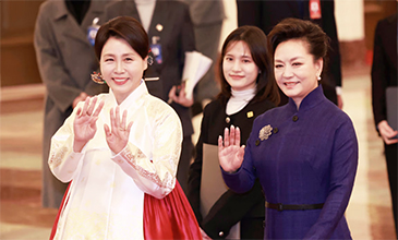 Madame Kim Hea Kyung (left), spouse of South Korean President Lee Jae-Myung, and Peng Liyuan, wife of Chinese President Xi Jinping, poses for the photo at the Great Hall of the People in Beijing on Jan. 5, 2026 as the South Korean presidential couple visit Beijing for the summit talks. Photo Courtesy of News1